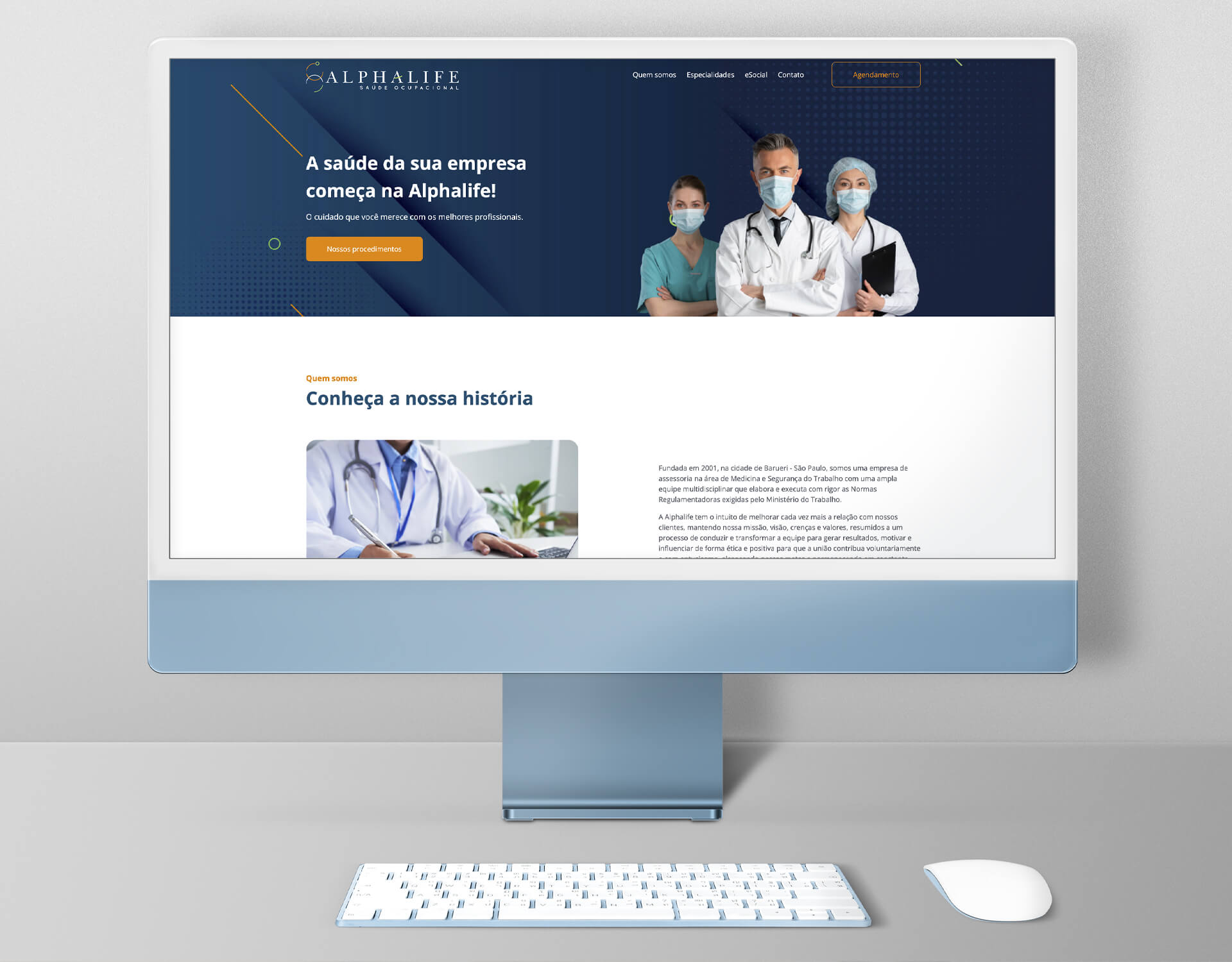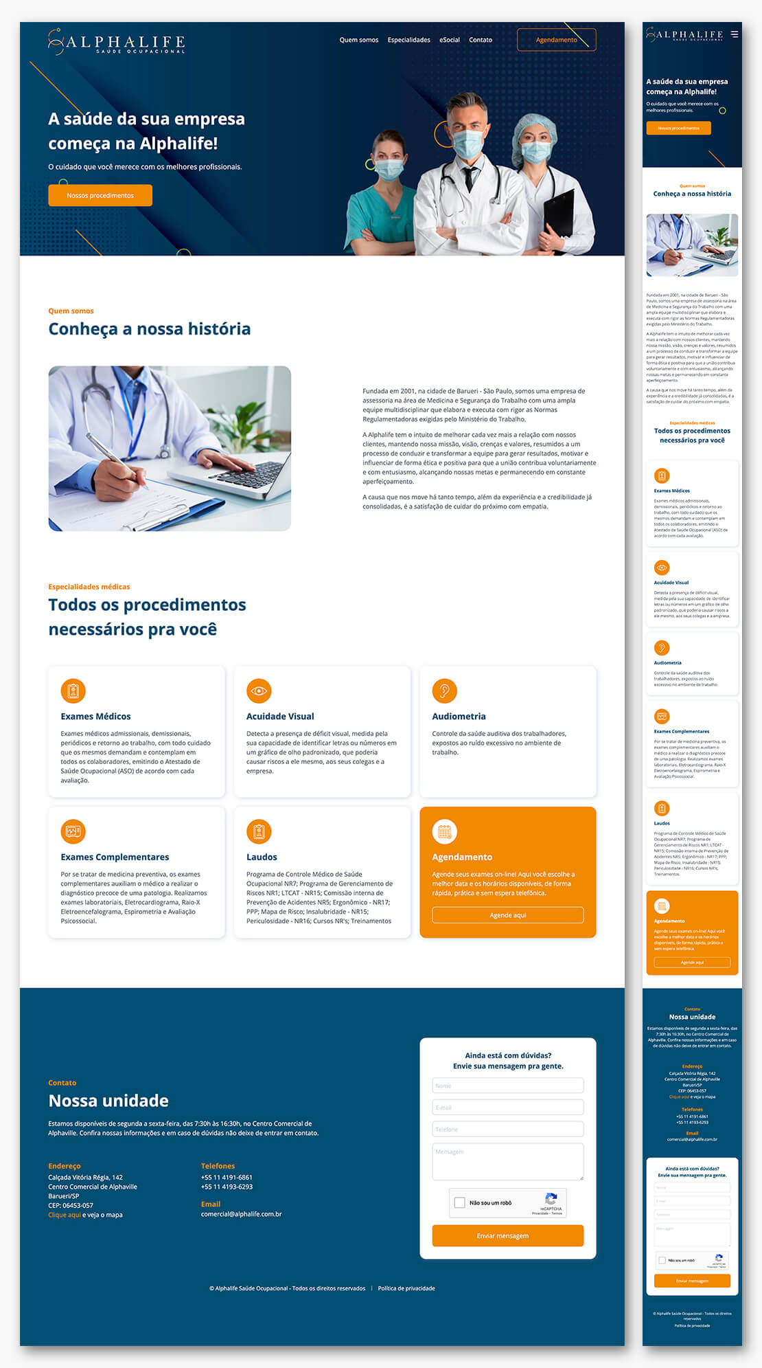 Com o objetivo de ser atrativo e eficiente, o site (landing page) foi desenvolvido com todas as informações necessárias para um primeiro contato, tentando traduzir a essência da empresa que é, além da experiência e a credibilidade já consolidadas, a satisfação de cuidar do próximo com empatia.
