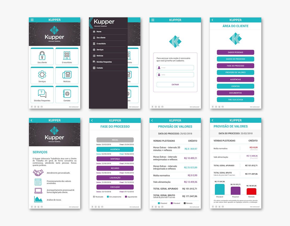 O aplicativo, interativo e cheio de funcionalidades, traz de forma rápida e prática informações dos processos, audiências e diversos serviços prestados pelo escritório.