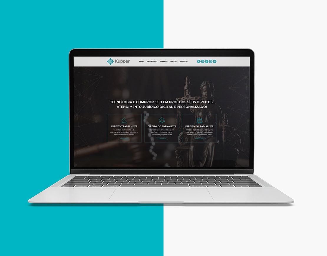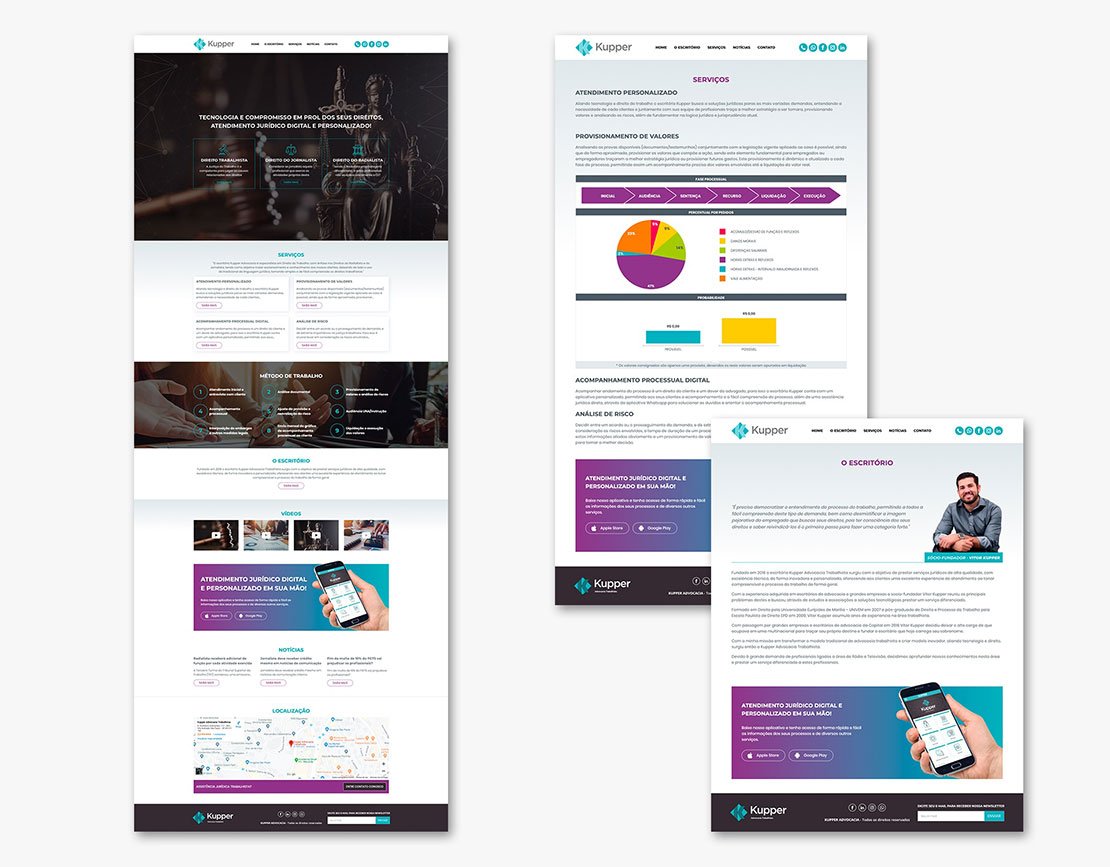 Com a criação do aplicativo surgiu a necessidade de reformulação do site, que foi modernizado e padronizado em cores e estilo. O mesmo foi pensado para as redes sociais, criando uma nova identidade para o escritório.